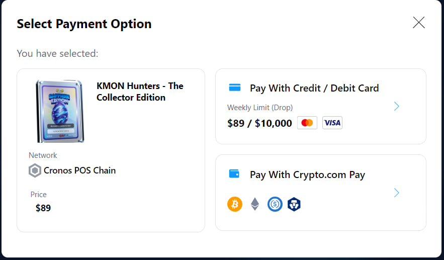 Steps to Buy the KMON:Hunter from Crypto.com Sale