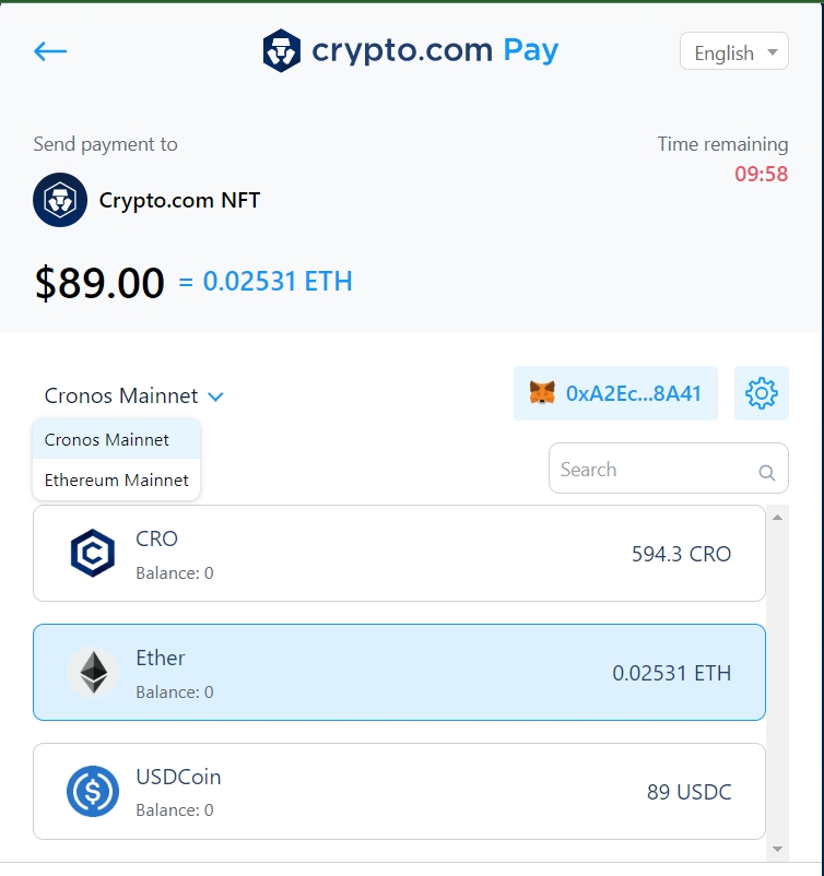 Pay Via Metamask only Support Ethereum or Cronos Mainnet.