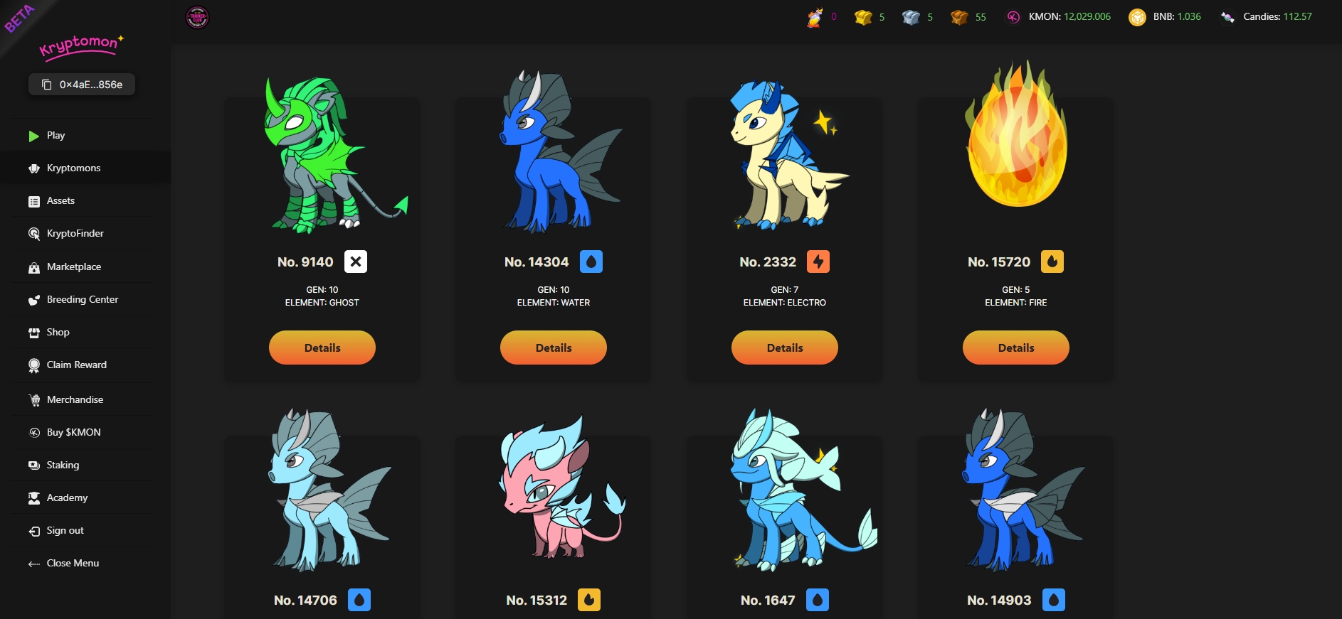 2) Select "Details" on the Kryptomon you wish to rename