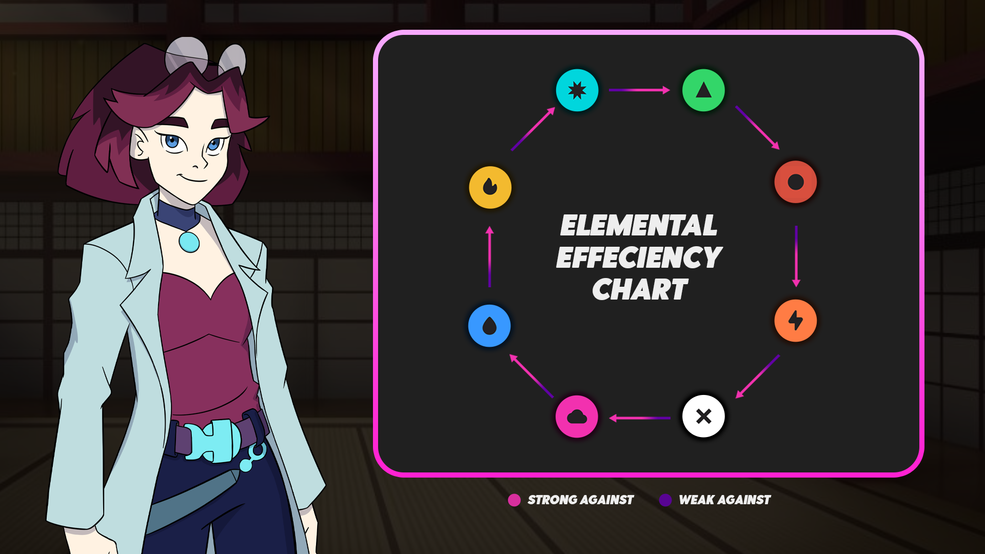 One of the most important pieces of information to know before walking into battle is the elemental advantage wheel pictured below. Every element has an advantage over one other element, and fielding the right Kryptomon might mean the difference between victory and loss.
