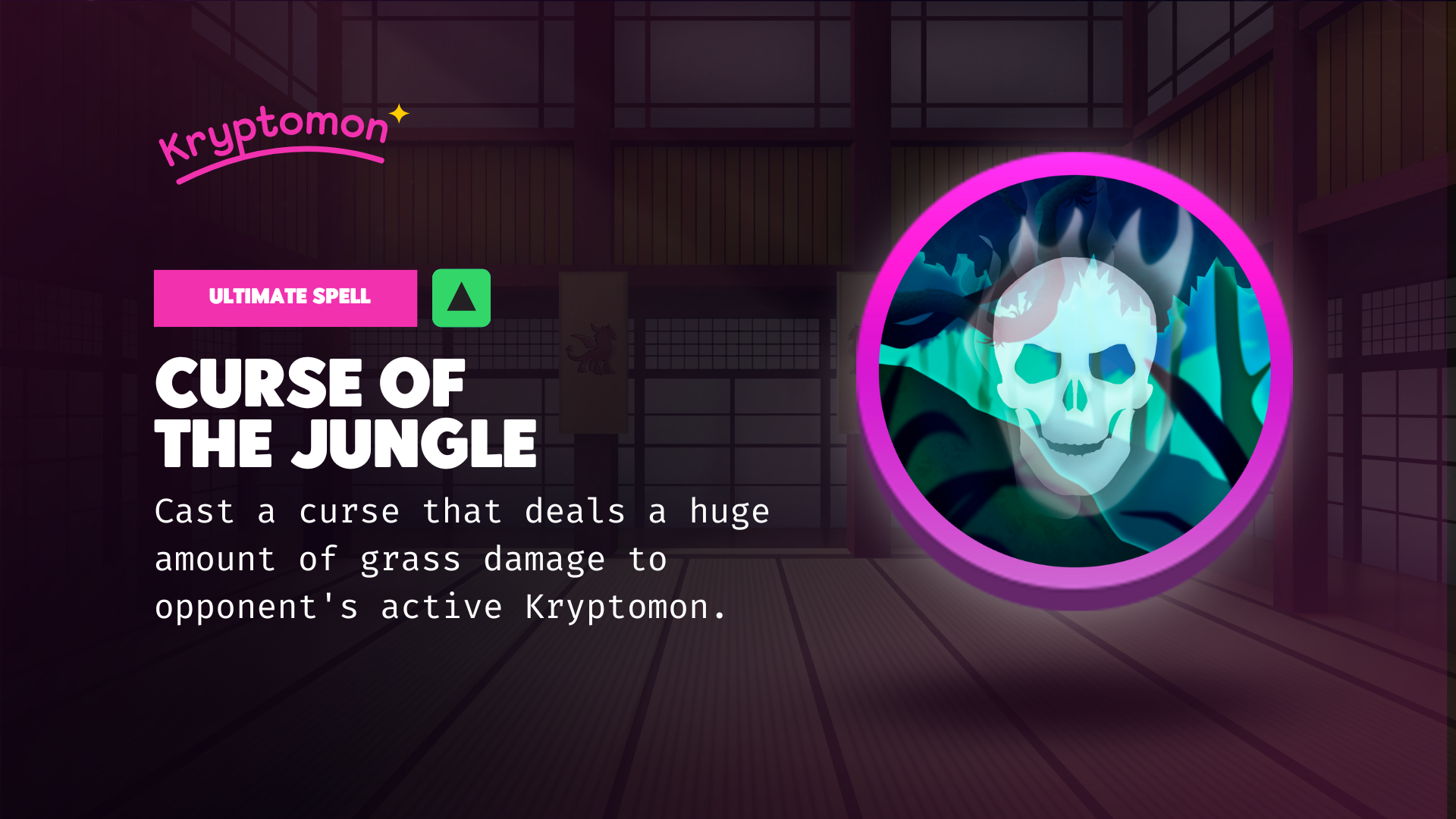 Outplaying its opponent with heals and regeneration from its unique Blessing of Nature spell, Grass Kryptomons are quite durable on the battlefield. Waiting for the right time to unleash the Curse of the Jungle to finish its prey. ![🍂](https://static.xx.fbcdn.net/images/emoji.php/v9/te2/1.5/16/1f342.png)\
