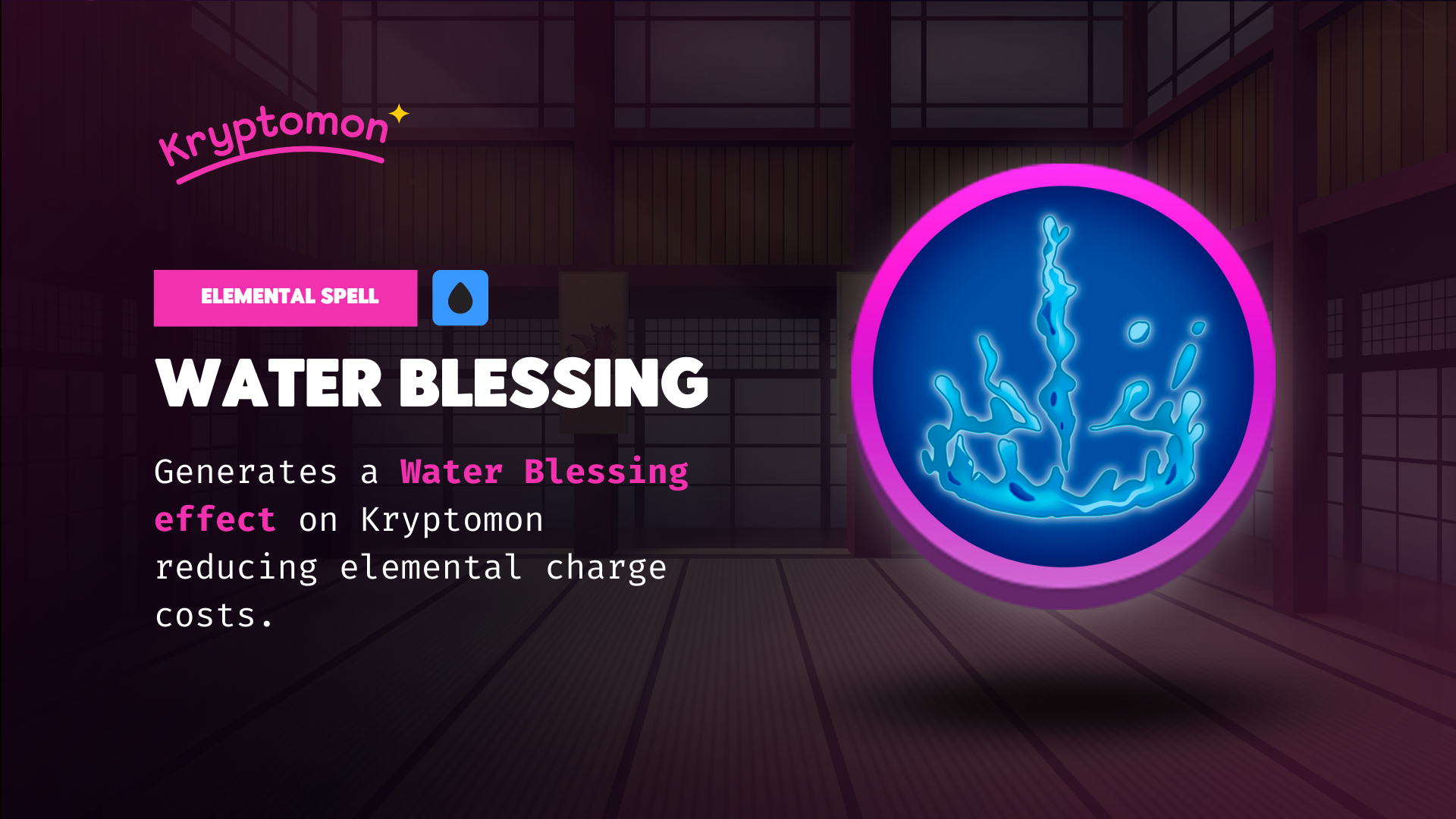 Notable for their efficient spell casting, Water Kryptomons can cast spells after spells with their unique Water Blessing effect. With reduced charges needed to activate spells on the battlefield, they drown their opponents with a continuous burst of vortex, while finishing them with a powerful tsunami. ![🌊](https://static.xx.fbcdn.net/images/emoji.php/v9/t15/1.5/16/1f30a.png)