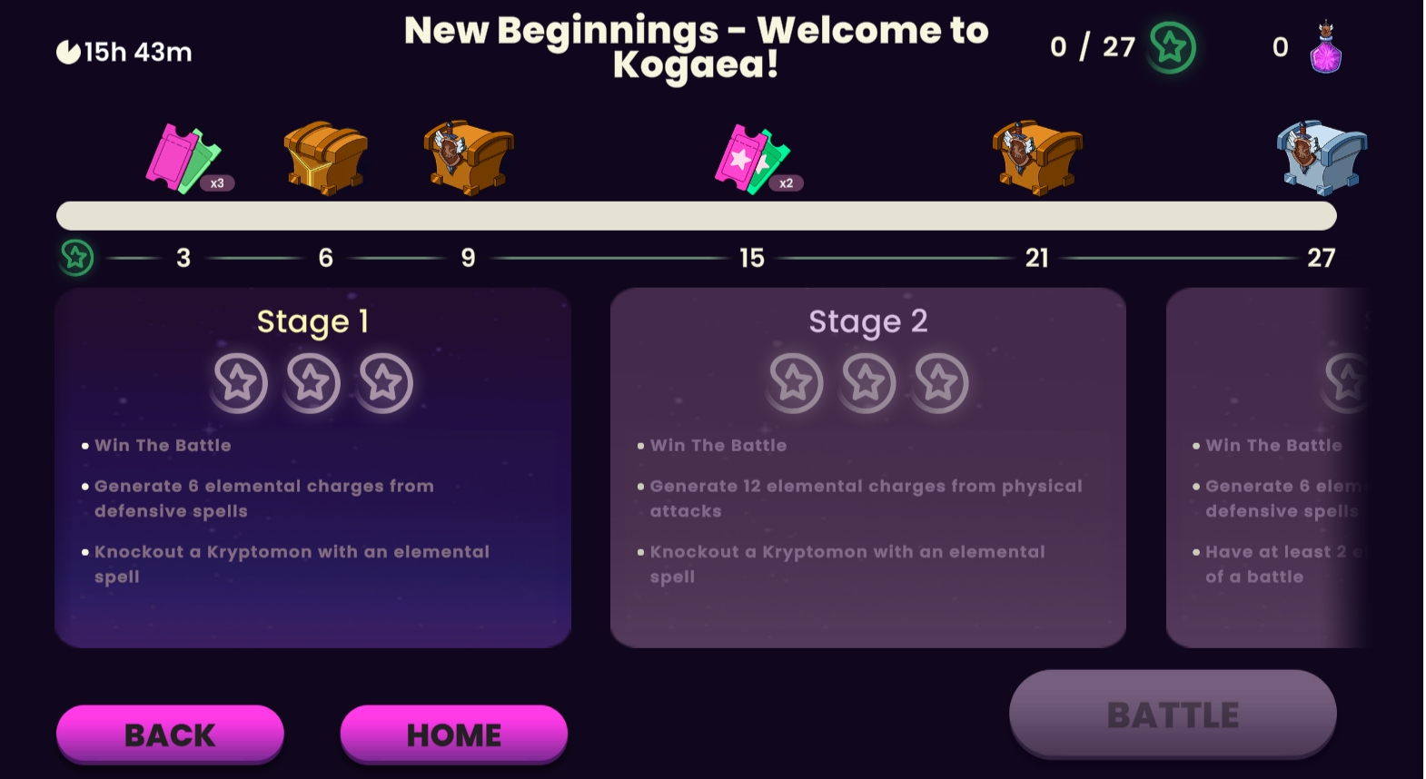 Each stage within a chapter will have 3 random challenges for the trainer to complete. Each successful challenge complete will grant the trainer one star. Upon certain star thresholds, players will be granted rewards such as chests, star tickets, and battle consumables!