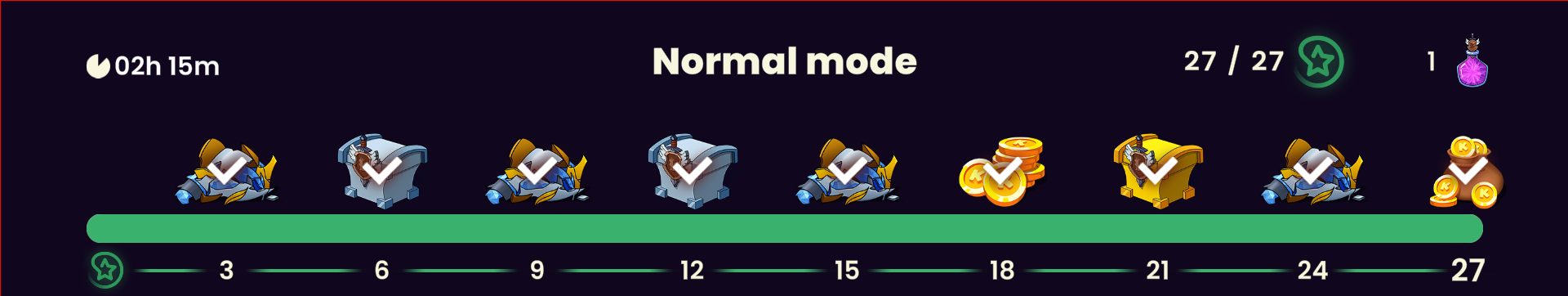 Normal mode is an advance challenge for users that have completed all 6 chapters! This mode will have users repeat a previous chapter but with increased challenges and much stronger foes! But this comes with increases $KMON rewards, earnable every day! Users will face kryptomon here that out level their own Kryptomon!