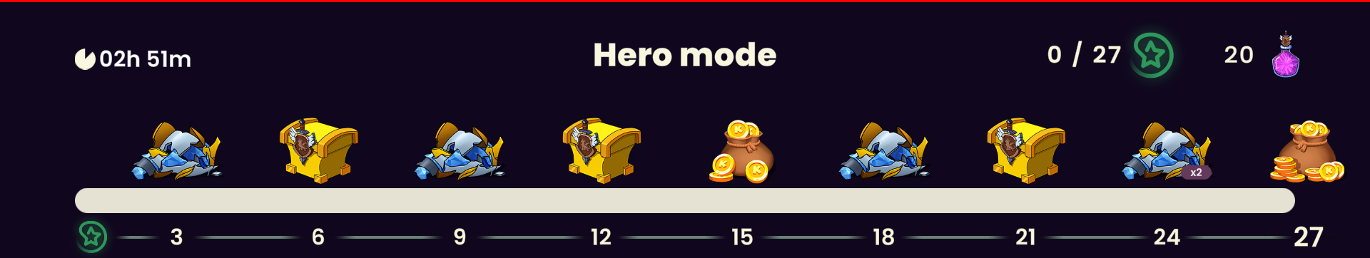 Hero mode is not for the fait of heart! This is were users can go for the hardest challenges and the greatest rewards! We highly recommend users have a well thought out team and strong armor before attempting to face this mode!