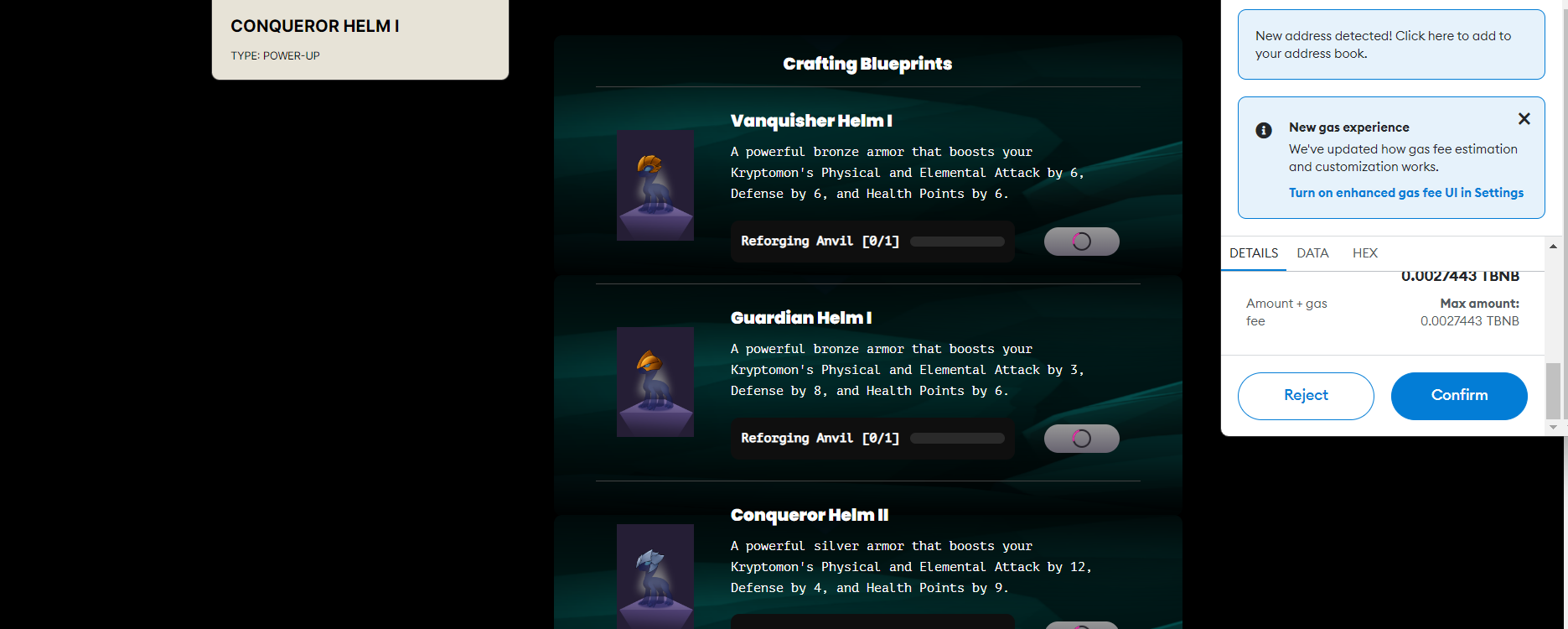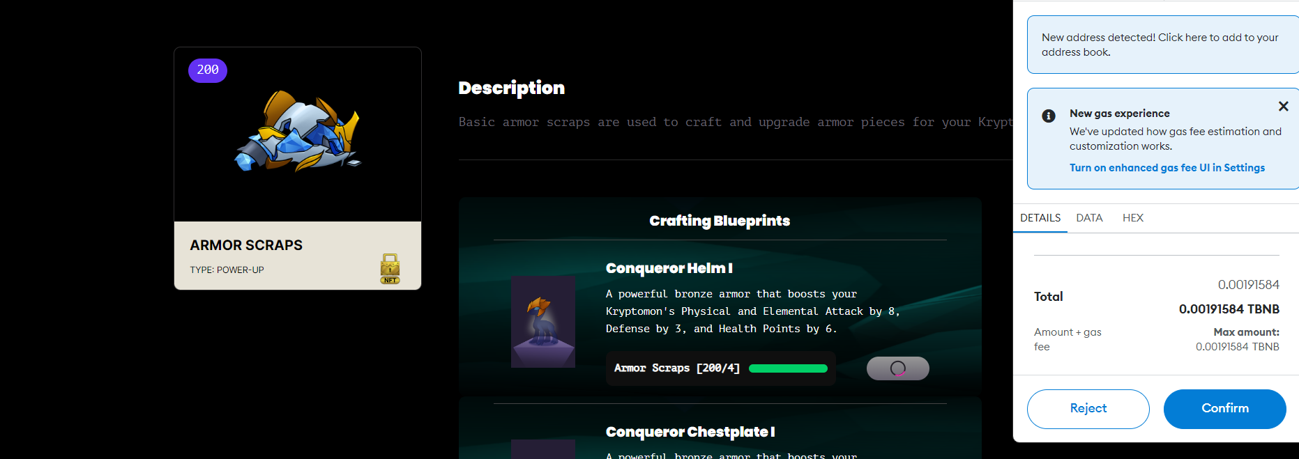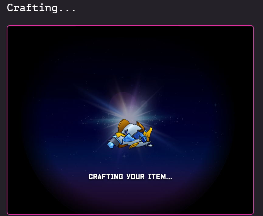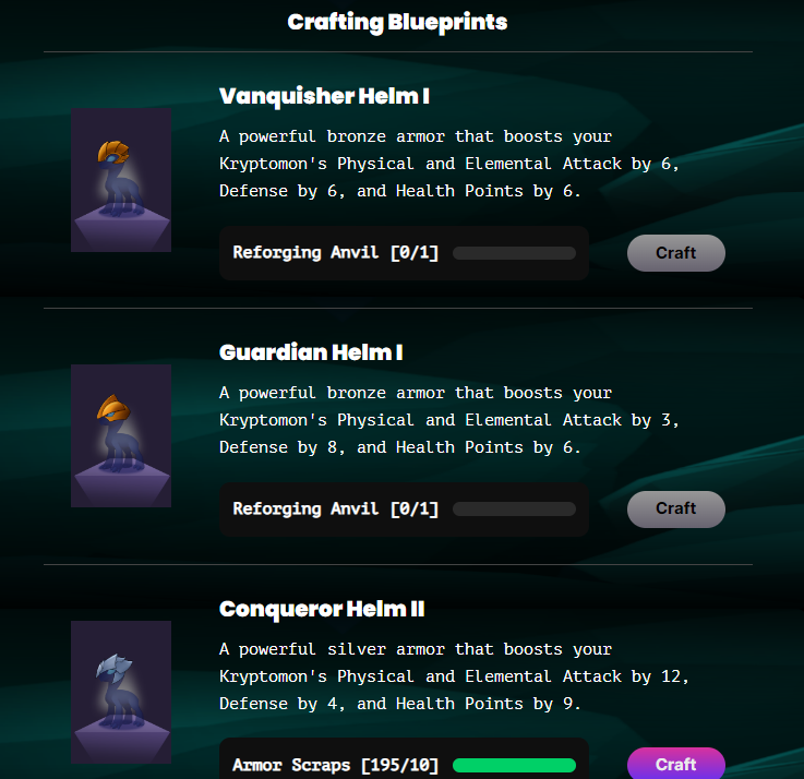 4. Wait for the blockchain and website to confirm your armor has been crafted!