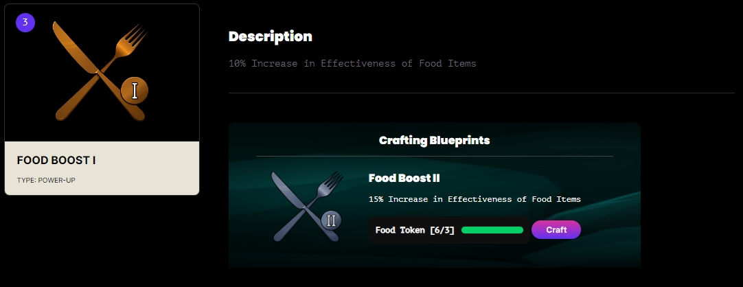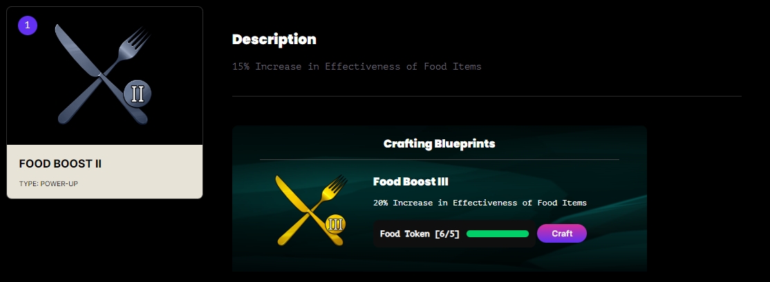 With just one token, players can craft a Bronze (Level 1) NFT Power Up that will give a permanent 10% bonus to its respective category! Players can craft this NFT by going to the marketplace and selecting the token they wish to upgrade into a full fledge Power Up! There are no fees besides the standard blockchain gas fee to transform your token. Once upgraded, players can either sell the Power Up on the marketplace or continue to infuse it with tokens to upgrade its effectiveness!