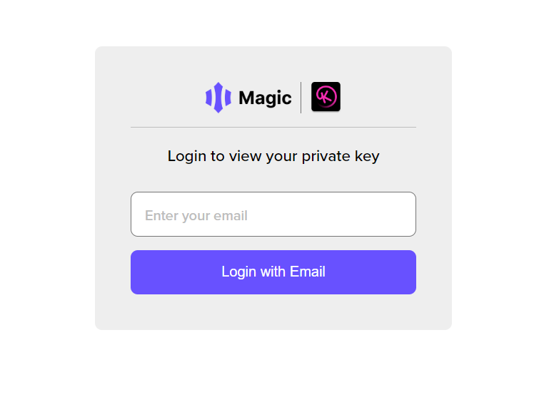 ### Step 1: Go to [<mark style="color:blue;">https://reveal.magic.link/kryptomon</mark>](https://reveal.magic.link/kryptomon) to obtain your private key