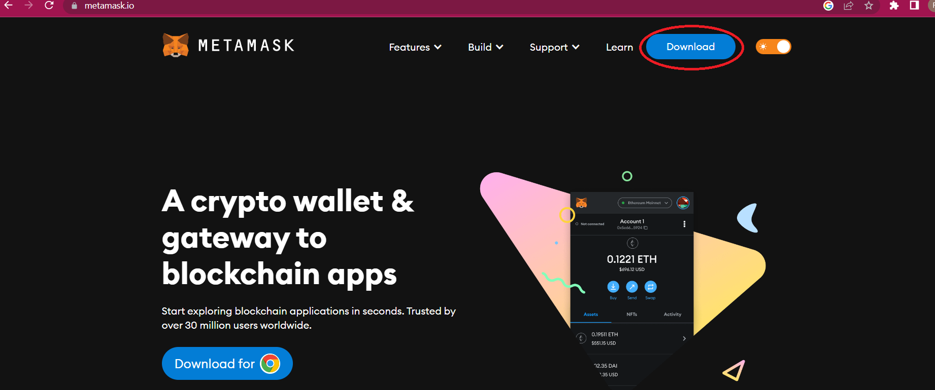 ### Step 5: Go to [<mark style="color:blue;">https://metamask.io</mark>](https://metamask.io/) and download the browser extension!&#x20;