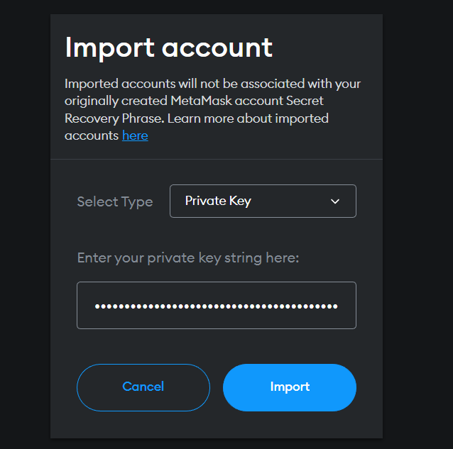 ### Step 7: Once Created, Import your Magic wallet using your <mark style="color:orange;">Private Key</mark>
