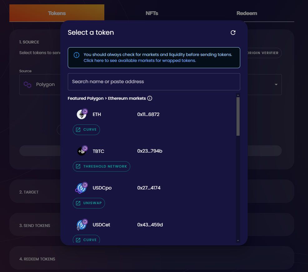 <mark style="color:orange;">**Step 2: Choose the Source and Target Chain: Polygon to Ethereum or Ethereum to Polygon based on what you need .**</mark>