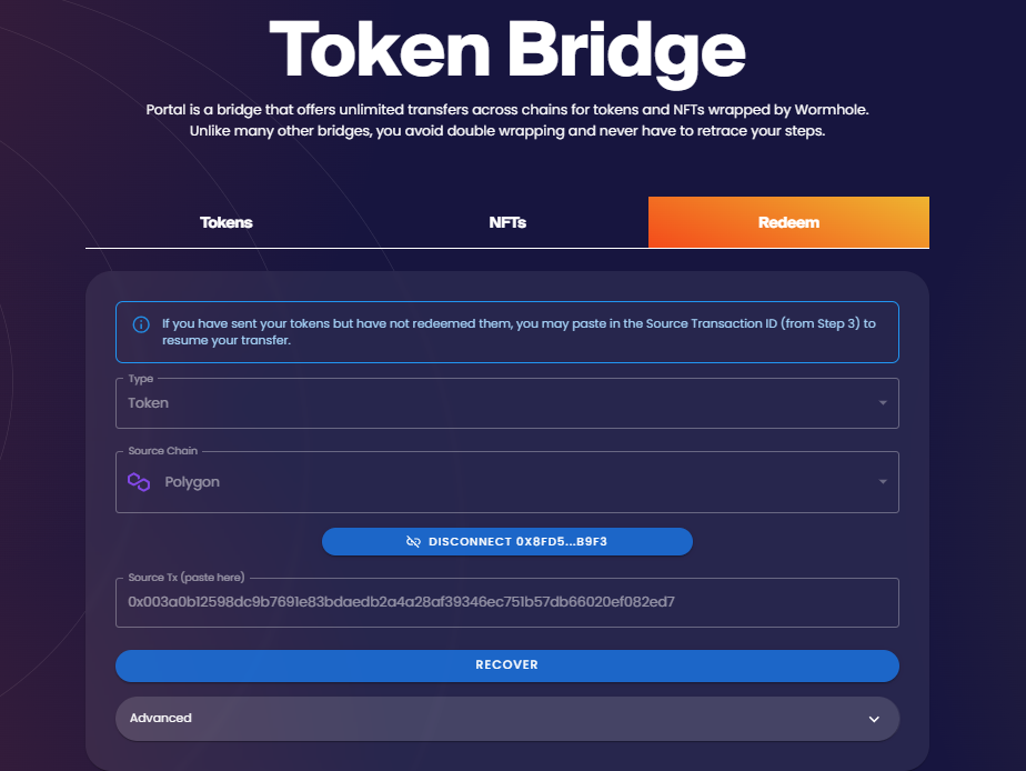 \- Visit: <https://portalbridge.com/advanced-tools/#/redeem>\