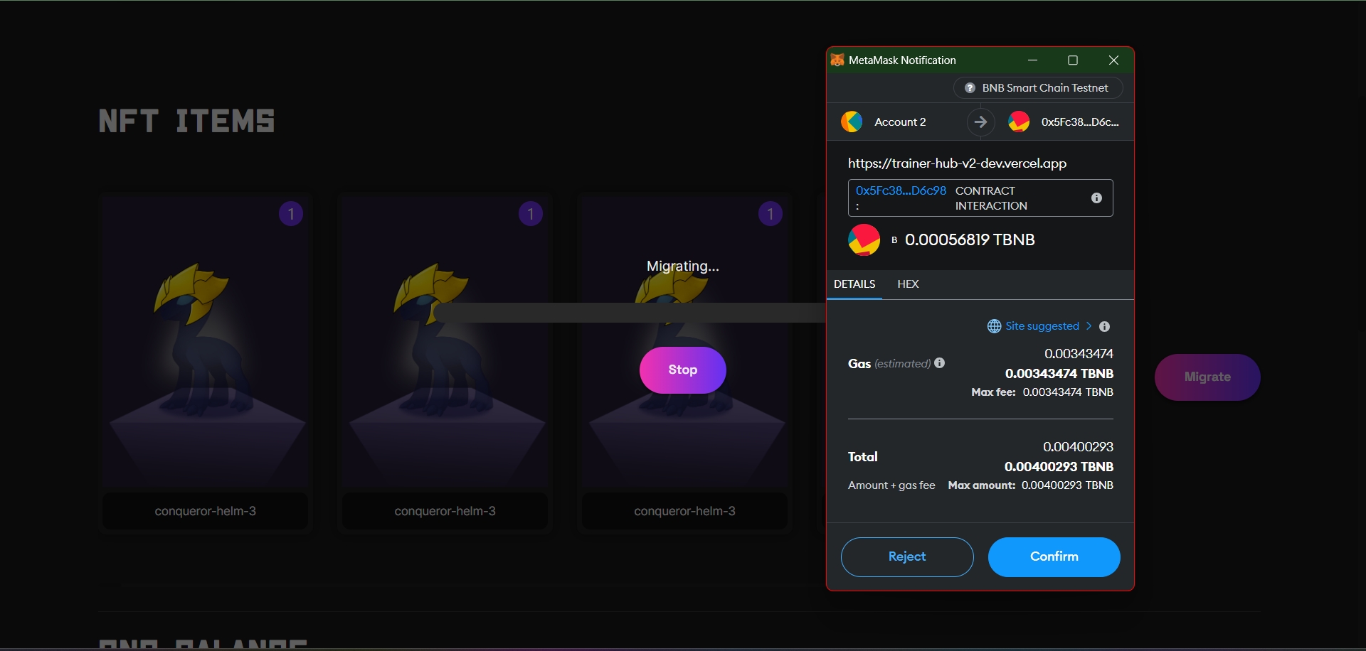 Step 4: Initiate the Migration and cover the transaction fees in $BNB to finalize the signing process.