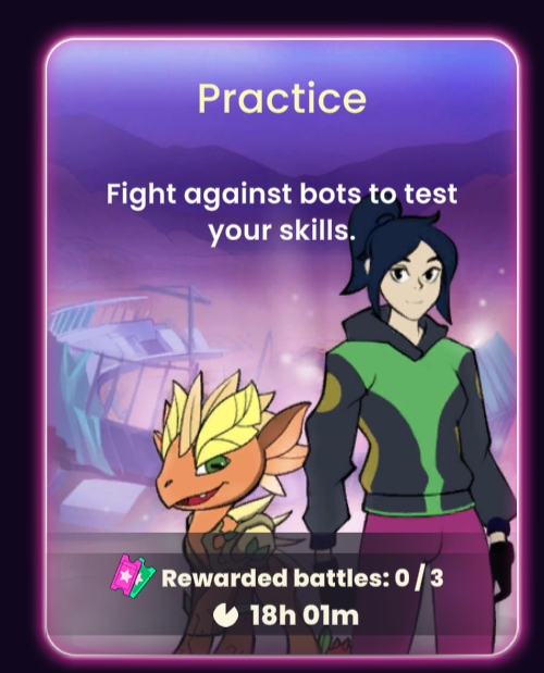 Ideal for first time players to put their strength and skills to the test! Practice mode will generate an opponent of similar strength for the user to face in battle. Perfect for testing your new pets or strategies while also earning up to 3 star tickets per day!