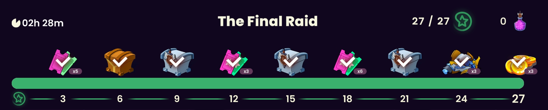 Chapter 6 is the final chapter in this first campaign. Here users can earn 3 armor scraps and 3 micro portion of $KMON each day! We recommend this chapter for users between level 46-50!